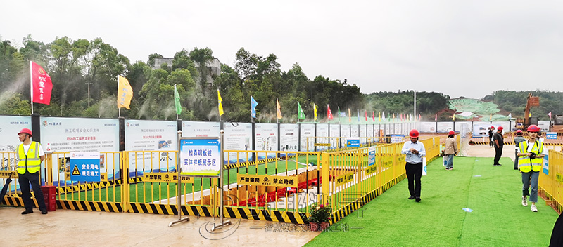 4、工程新技術新工藝應用。GRF裝配式護坡工藝、拉森鋼板樁工藝、安全防護工具化、360度高壓霧樁噴淋系統和微頂管工藝展示。
