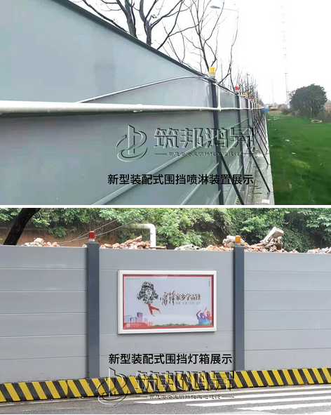 新型裝配式圍擋(B類)還集成了噴淋系統(tǒng)、廣告燈箱、警示燈等多種功能,具有模塊化、低成本、防護性能好、可重復使用等優(yōu)點。該款圍擋在工廠通過流水線精細化生產(chǎn),不僅保證了圍擋的質(zhì)量及形象,而且提高了現(xiàn)場裝配施工效率,原技術(shù)需要十余天工期的圍擋建設,現(xiàn)在僅僅花費了不到五分之一的時間就可完成,且無需現(xiàn)場二次施工。