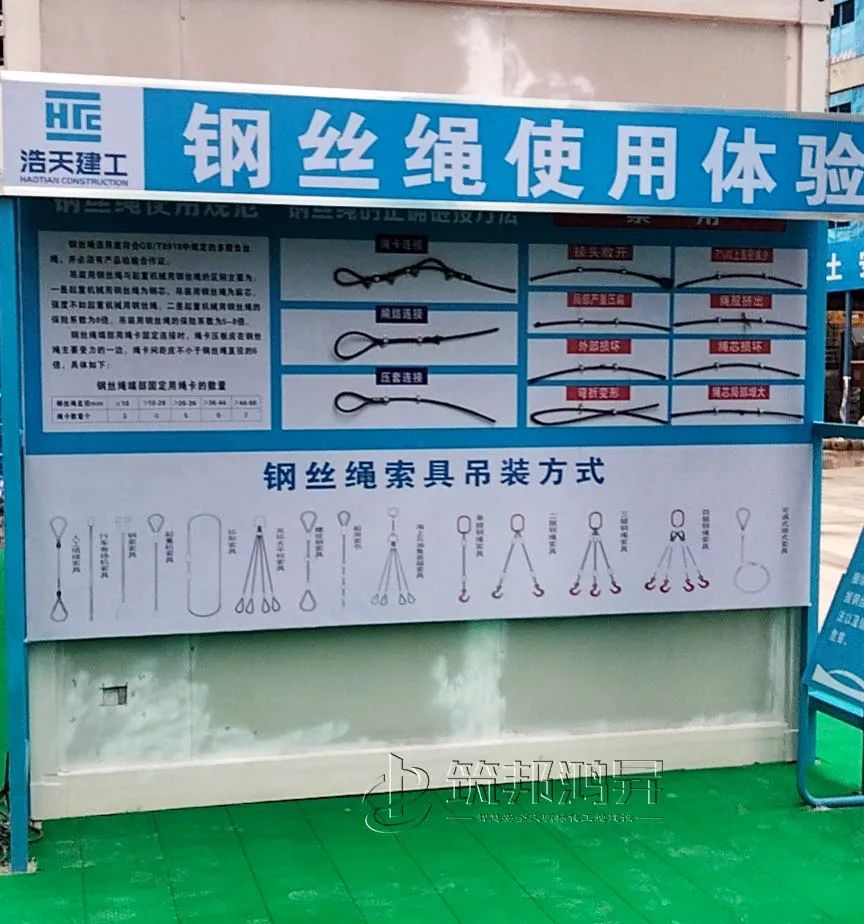 此次合作的工地安全體驗館建設(shè)包括了鋼絲繩使用體驗、安全帽/鞋撞擊體驗、綜合用電體驗、滅火器演示體驗、機械傷害體驗、重物搬運體驗、安全急救培訓體驗等十幾項設(shè)備。標準款采用鋼結(jié)構(gòu)組裝式設(shè)計,高溫烤漆不易褪色,顏色鮮艷更美觀,設(shè)計制作安裝一站式服務。筑邦安排專車送貨到工地,同時安排專業(yè)的安裝團隊來到長沙工地現(xiàn)場,進行專業(yè)安裝。項目相關(guān)負責人驗收后,十分滿意。