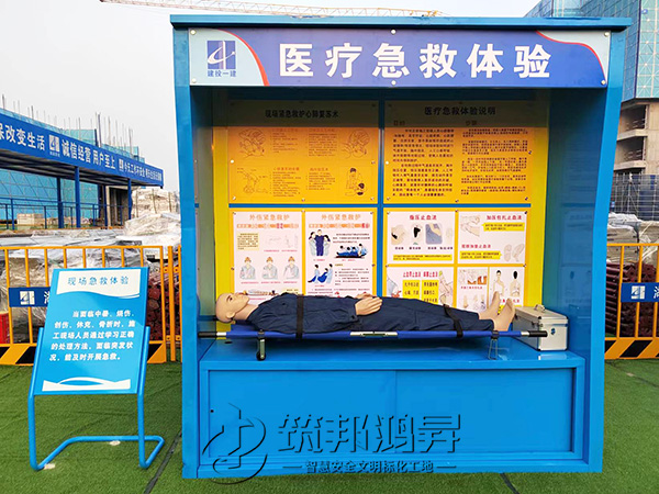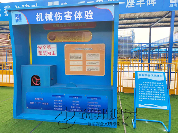 此次合作的安全教育培訓體驗區建設包括了機械傷害體驗、醫療急救體驗、安全帶使用體驗、勞保用品展示體驗、洞口墜落體驗、消防滅火體驗、安全帽/鞋撞擊體驗等。鈑金款安全體驗區設備采用全鋼鈑金設計,美觀醒目。筑邦安排專車送貨到湘潭工地,同時安排了專業人手迅速到工地加班加點完成安裝。