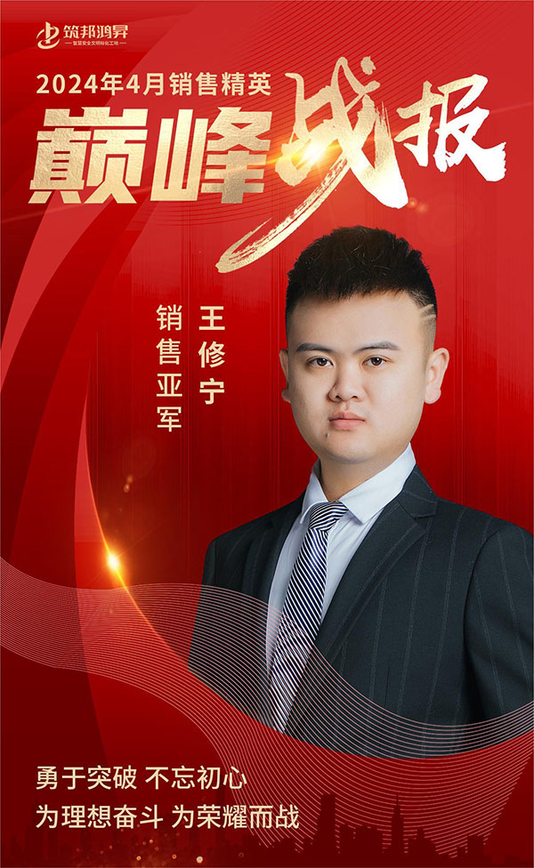 4月份,筑邦鴻昇又迎來了一場銷售的盛宴,我們的銷售團(tuán)隊在過去的4月份再次創(chuàng)造了輝煌,讓我們一同為銷售部精英取得的杰出成績喝彩。值此良機(jī),我們向大家介紹我們銷售部4月銷售業(yè)界的前三甲——冠軍康納輝、亞軍王修寧和季軍康治輝,他們的奮斗和成就展示了我們企業(yè)全心全意服務(wù)客戶的承諾和精神,同時也是我們?nèi)w銷售部成員的榜樣和鼓舞!