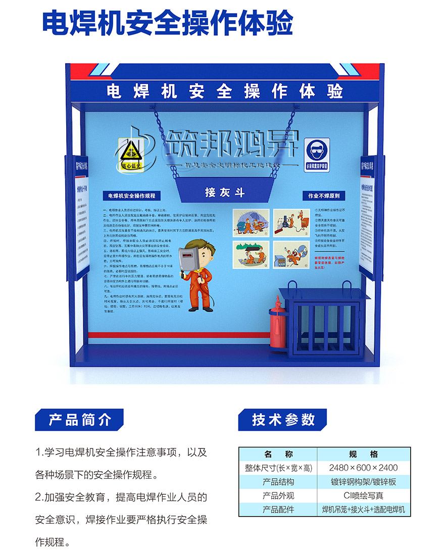 【筑邦鴻昇】實(shí)體安全體驗(yàn)館采用視、聽、體驗(yàn)相結(jié)合的立體式安全教育模式,實(shí)施可感受、可操作的實(shí)體化安全教育。安全體驗(yàn)館通過模擬建筑施工現(xiàn)場可能發(fā)生的各種安全事故,讓體驗(yàn)者親身參與、體驗(yàn),寓教于樂,體驗(yàn)不安全操作行為帶來的危害,讓每個(gè)員工都有實(shí)際操作的動手能力,真正達(dá)到“以人為本預(yù)防為主”為目的的場館。通過體驗(yàn),讓體驗(yàn)者熟練掌握安全操作規(guī)程以及緊急情況的安全對策,達(dá)到提升職業(yè)技能、提高安全意識的目的。實(shí)體體驗(yàn)館有(常規(guī)款+鈑金款+經(jīng)濟(jì)款),下面展示的是經(jīng)濟(jì)款。