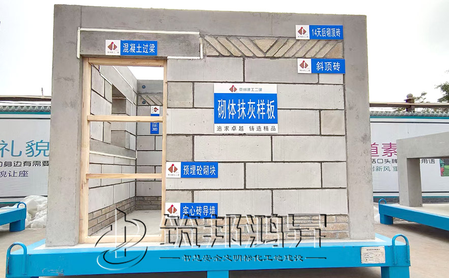 [筑邦鴻昇]砌體抹灰樣板,施工工藝工法質量樣板是根據(jù)施工單位的要求和標準制作,展示其在本工程所采用的材料及其質量、施工工藝、施工流程、技術水平及施工質量。砌體抹灰樣板,不僅是展示施工工藝、明確施工質量、展現(xiàn)施工流程、探索施工技術的一種有效手段,也是向外界展示工程品質和企業(yè)形象的廣告牌。